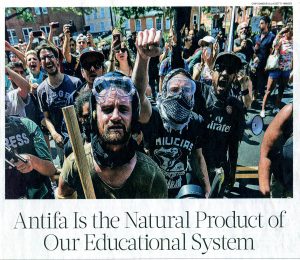 ☞ Aside from basic terror tactics employed by the “anti-fascists” (destroying properties and hurting people while receiving cheering accolades of approval from deconstructionists and their bureaucratic counterparts), the so-called anti-fascists even sport traditional fascist fashion. Not only are black shirts part of their chic ensemble, but black battle hoods with matching black vests over a black heart. They are well supplied with the proper clubs, signs, projectiles: all of which recall in greater detail the original fascists of Mussolini Italy. They even deploy something as touchingly reminiscent as Molotov cocktails to warm the heart of any old veteran fascist.