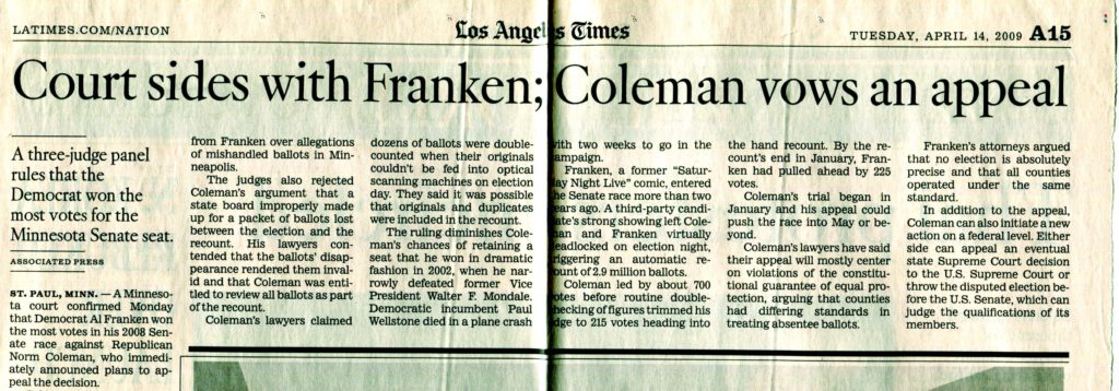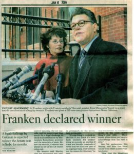Franken’s humor is especially curious when he’s hitting on the authenticity of Trump’s election, while his own race turned into a sour comedy. Remember Franken’s first election when it was announced that his opponent, Norm Coleman, had won? Then the whole thing went into dispute about ballot count (Sound familiar?) Then— abra cadabra— it was Senator AL FRANKEN! Guess they had to recruit more of the zombie vote in Minnesota. Or maybe they had to thaw some out. So AL FRANKEN gets to do his boring bits on Saturday Senate Live, serving on a